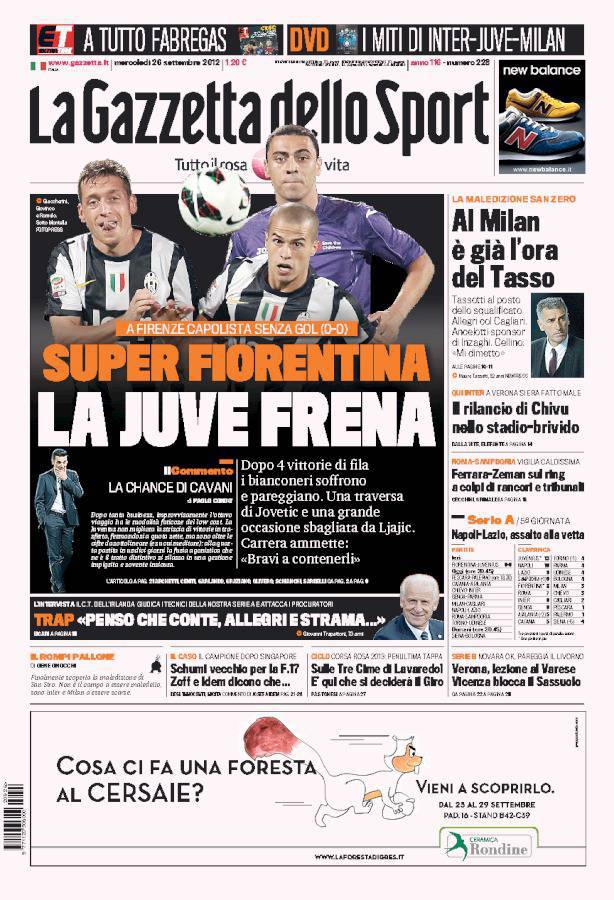 GAZZETTA FIORENTINA JUVENTUS – Sulla Gazzetta dello Sport si parla del pareggio tra Fiorentina e Juventus. Grande prova dei viola.