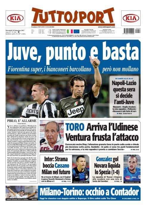 TUTTOSPORT JUVENTUS – Anche Tuttosport sottolinea la grande prova della Fiorentina che blocca la Juventus.