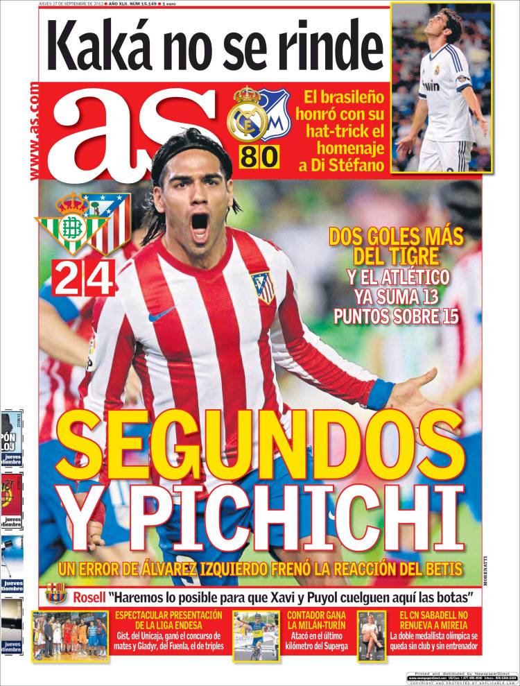 AS ATLETICO MADRID – Sul quotidiano As si parla dell’Atletico Madrid che vince e si porta al secondo posto con Falcao capocannoniere.