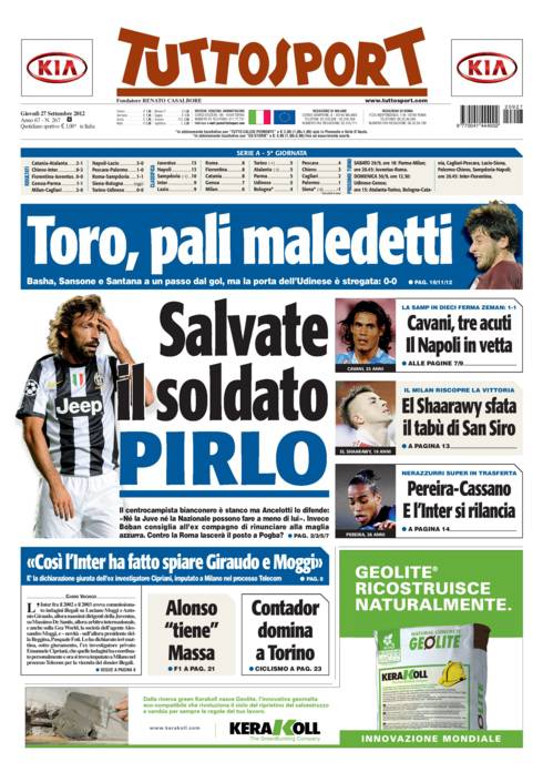 TUTTOSPORT PIRLO – Su Tuttosport si parla di Pirlo che è stanco e potrebbe rimanere a riposo per qualche giornata.