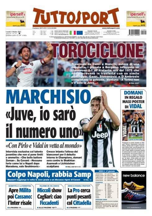 TUTTOSPORT MARCHISIO JUVENTUS – Su Tuttosport parla Marchisio che vuole diventare il numero uno al mondo.