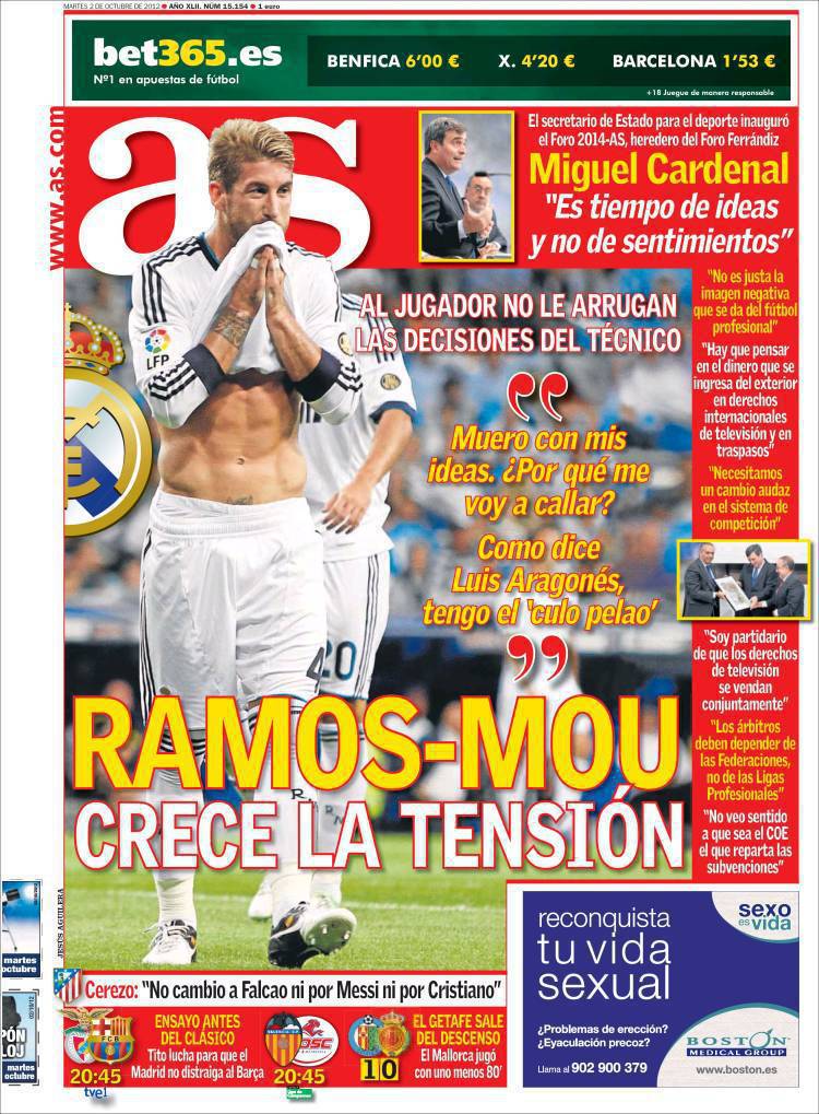 AS RAMOS MOURINHO – Sul quotidiano As arriva la conferma del rapporto complicato tra Ramos e Mourinho.
