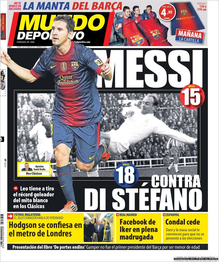 MUNDO DEPORTIVO MESSI – Lionel Messi è a soli tre gol da Di Stefano che ha il record di 18 gol nei match tra Real Madrid e Barcellona.