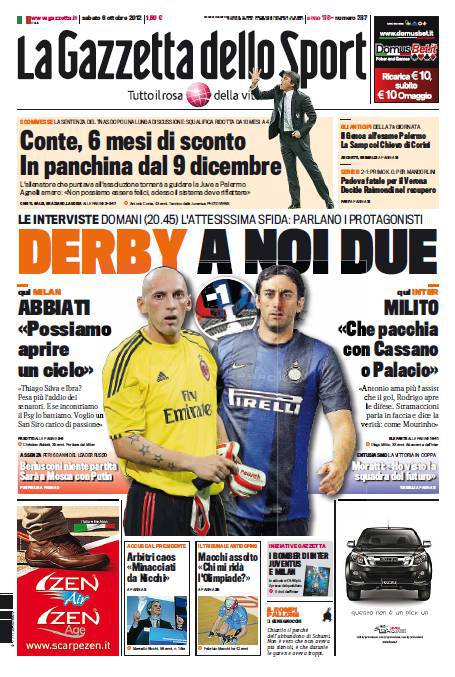 GAZZETTA DERBY – Intervista sulla Gazzetta dello Sport a Milito e Abbiati in vista del derby di domani sera.