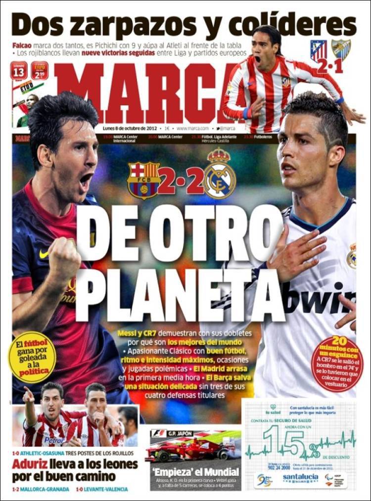 MARCA MESSI RONALDO – Barcellona-Real Madrid finisce due a due con doppietta di Messi e doppietta di Ronaldo.