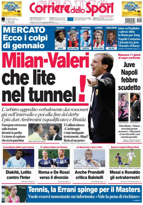 CORRIERE MILAN VALERI – Sul Corriere dello Sport si parla della reazione furibonda del Milan contro l’arbitro Valeri.
