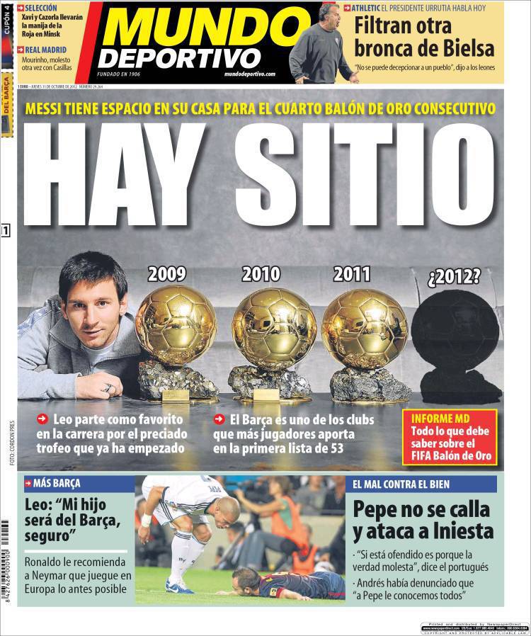 MUNDO DEPORTIVO MESSI – Sul quotidiano Mundo Deportivo si parla di Messi che è il favorito alla vittoria del Pallone d’Oro.