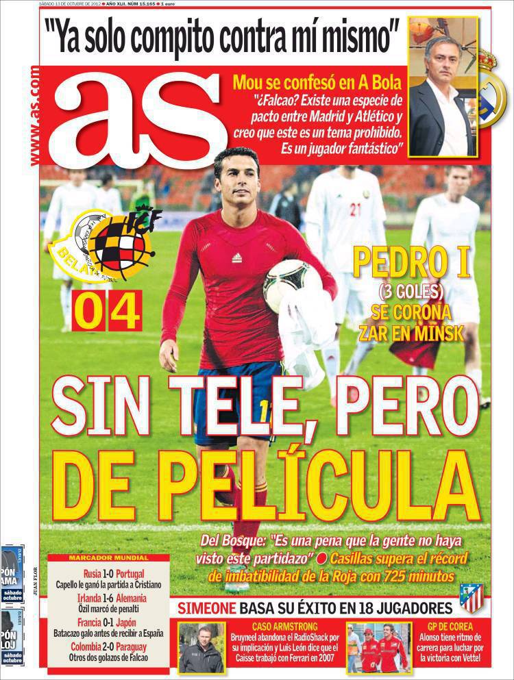 AS SPAGNA – Il quotidiano As parla di una Spagna da film quella che vince quattro a zero contro la Bielorussia.