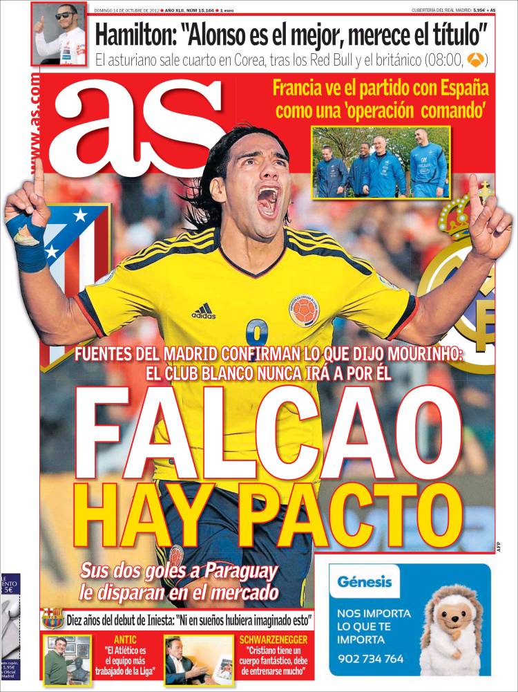 RASSEGNA STAMPA REAL MADRID FALCAO – Il Real Madrid insegne Falcao. Fonti vicine al Real confermano quanto dice Mourinho: esiste un patto per portare Falcao alle Merengues. I suoi due gol al Paraguay lo rendono ancor di più obiettivo di mercato.
