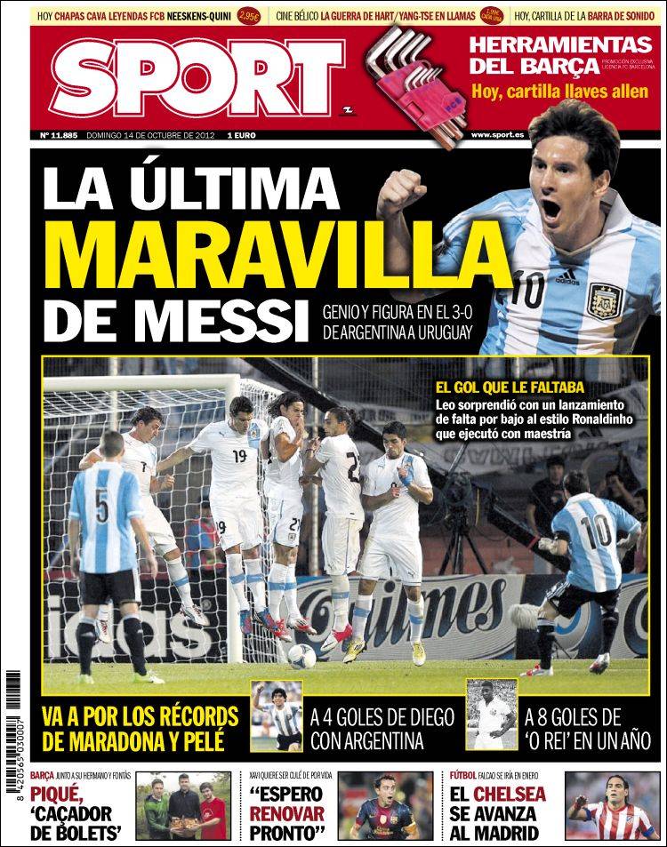 RASSEGNA STAMPA MESSI ARGENTINA – Contro l’Uruguay, Messi ha trascinato l’Argentina alla vittoria per 3-0. Spelndido il gol su punizione che ha eseguito in stile Ronaldinho. La pulce ha ammesso di ispirarsi alle punizioni di Ronaldinho e Pirlo.