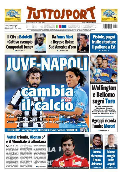 TUTTOSPORT JUVENTUS NAPOLI – E’ tempo di Juventus-Napoli che si giocherà il 20 ottobre. I due club sono alleati contro alcune vicende di Lega.