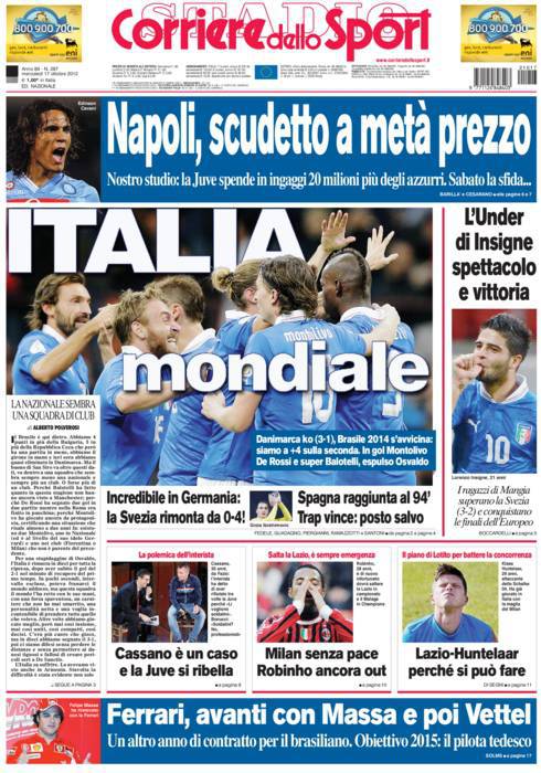 CORRIERE IALIA – Anche il Corriere dello Sport parla della bella prestazione dell’Italia contro la Danimarca.