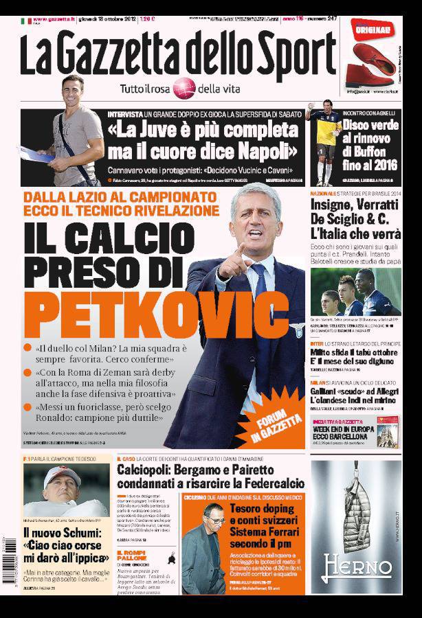 GAZZETTA PETKOVIC – Intervista esclusiva sulla Gazzetta dello Sport con il tecnico della Lazio Petkovic.