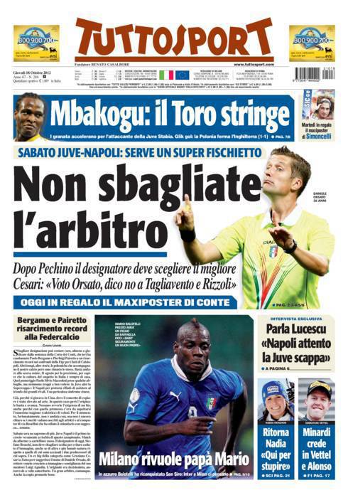 TUTTOSPORT ARBITRO – Su Tuttosport si parla del possibile arbitro di Juventus-Napoli. Salgono le quotazioni di Orsato.