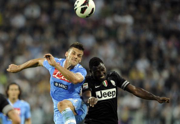 JUVENTUS NAPOLI VOTI PAGELLE – La Juventus batte il Napoli 2-0, stacca i partenopei e si issa da sola in testa alla classifica. I gol arrivano dalla panchina: all’80’ calcio d’angolo di Pirlo e colpo di testa vincente di Caceres, lasciato colpevolmente solo dalla difesa del Napoli; due minuti dopo con un gran sinistro al volo Pogba fulmina De Sanctis e chiude i conti. Nel primo tempo da segnalare un incrocio dei pali centrato da Cavani su punizione. Ecco voti e pagelle: