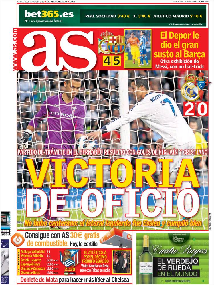 RASSEGNA STAMPA REAL MADRID – Il Real Madrid vince senza fatica contro il Celta Vigo più brutto di tutta la stagione. Gli uomini di Mourinho si limitano a giocare un quarto d’ora mettendo a segno la rete del vantaggio dopo appena dieci minuti cal calcio d’inizio con Higuain. Nella ripresa l’unico spunto è il calcio di rigore trasfromato da Cristiano Ronaldo.