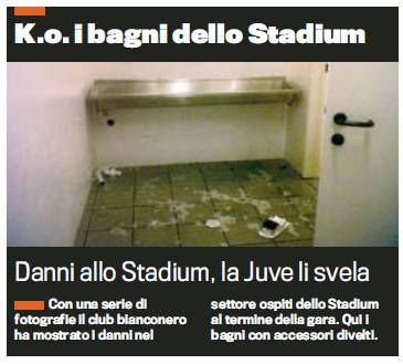 JUVENTUS-NAPOLI AEROPLANINO DI CARTA BAGNI STADIUM / Arriva dalle pagine de La Gazzetta dello Sport, attraverso due scatti fotografici, la furia dei tifosi partenopei a fronte del big match di ieri sera. Una sconfitta che il tifo del Napoli non riesce ad accettare, e lo dimostrano le immagini dei bagni nel settore ospiti del nuovo impianto torinese, completamente distrutti dagli scellerati partenopei. Di seguito la foto che documenta lo spiacevole accaduto.