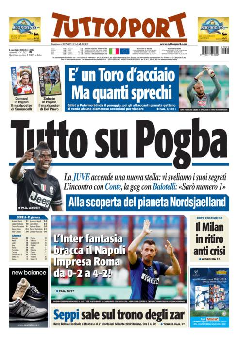 TUTTOSPORT POGBA – Su Tuttosport si parla di Pogba, nuovo idolo dei tifosi della Juventus. Pogba in gol contro il Napoli.