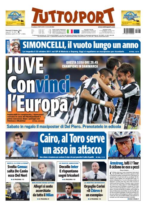 TUTTOSPORT JUVENTUS – Anche Tuttosport spinge la squadra di Conte in Europa.