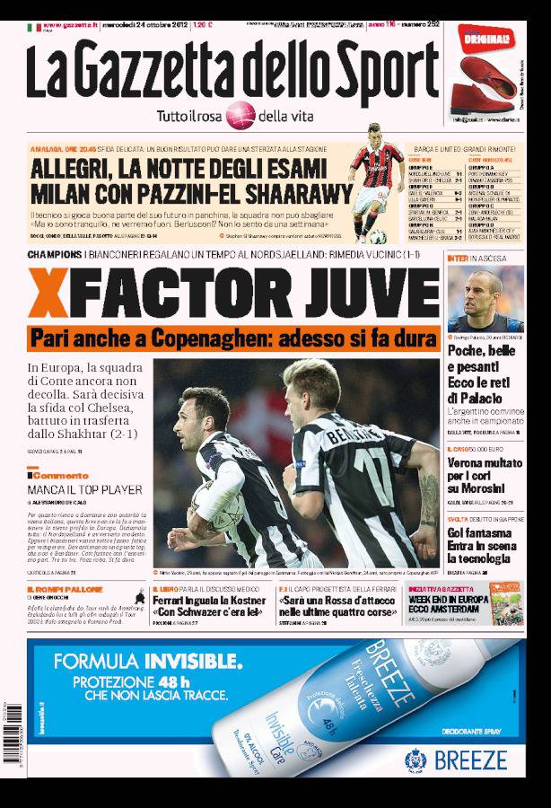 GAZZETTA JUVENTUS – La Juventus in Europa non vince e ieri ha pareggiato in casa del Nordsjaelland.
