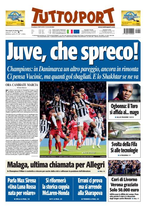 TUTTOSPORT JUVENTUS – Su Tuttosport si parla della Juventus che in Danimarca pareggia uno a uno contro il Nordsjaelland.