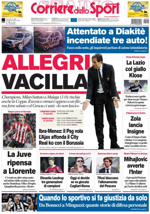 CORRIERE ALLEGRI – Sul Corriere dello Sport si parla della posizione di Allegri che è in bilico.