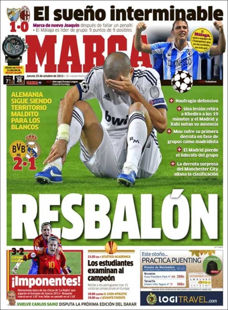 MARCA REAL MADRID – Sul quotidiano Marca si parla del Real Madrid che perde due a uno in casa del Borussia Dortmund.