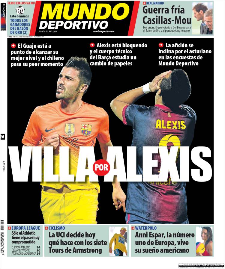MUNDO DEPORTIVO VILLA – Il quotidiano Mundo Deportivo parla di un possibile cambio tecnico con Villa al posto di Sanchez.