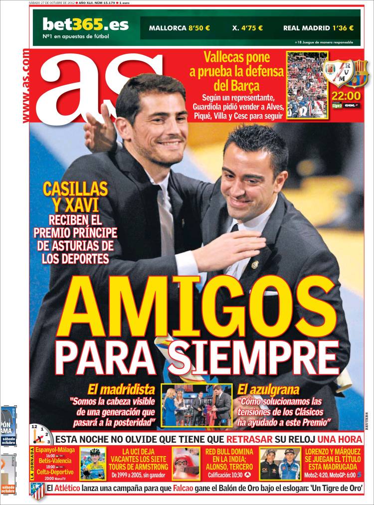AS XAVI CASILLAS – Il quotidiano As parla della forte amicizia tra Casillas e Xavi.
