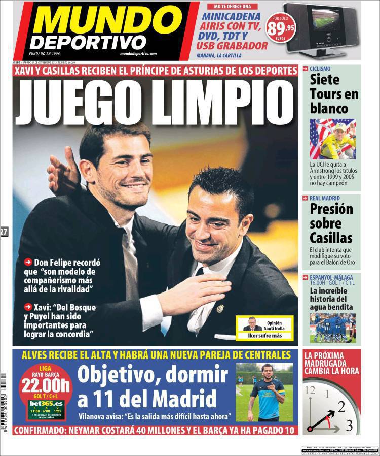 MUNDO DEPORTIVO XAVI CASILLAS – Sul quotidiano Mundo Deportivo si parla di Xavi e Casillas che sono amici nonostante la grande rivalità tra Real Madrid e Barcellona.