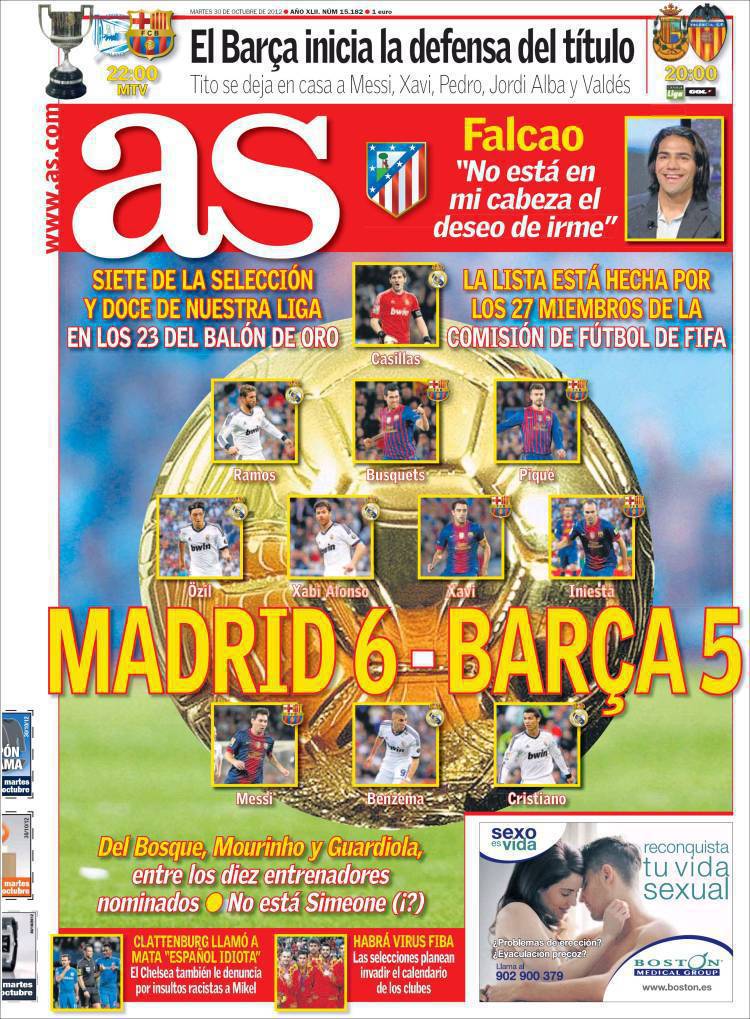 AS MADRID BARCELLONA PALLONE D’ORO – Nei 23 finalisti del Pallone d’Oro ci sono sei giocatori del Real Madrid e 5 del Barcellona.