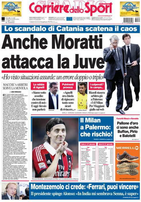 CORRIERE MORATTI JUVENTUS – Sul Corriere dello Sport si parla delle dichiarazioni di Moratti che ha parlato dell’errore di Catania.