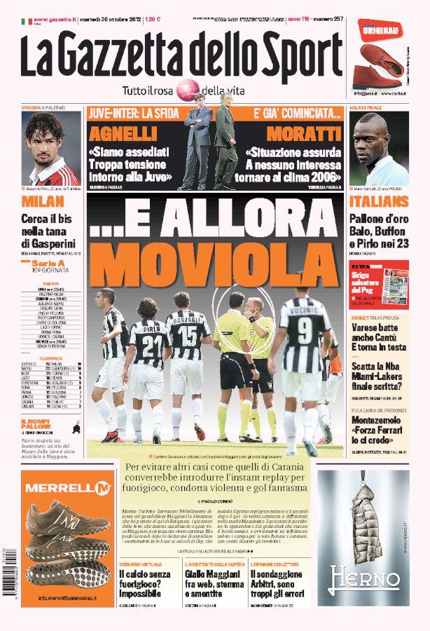GAZZETTA MOVIOLA – Sulla Gazzetta dello Sport si parla della possibilità di introdurre la moviola in campo.