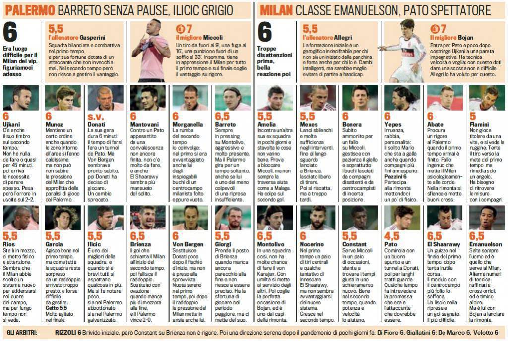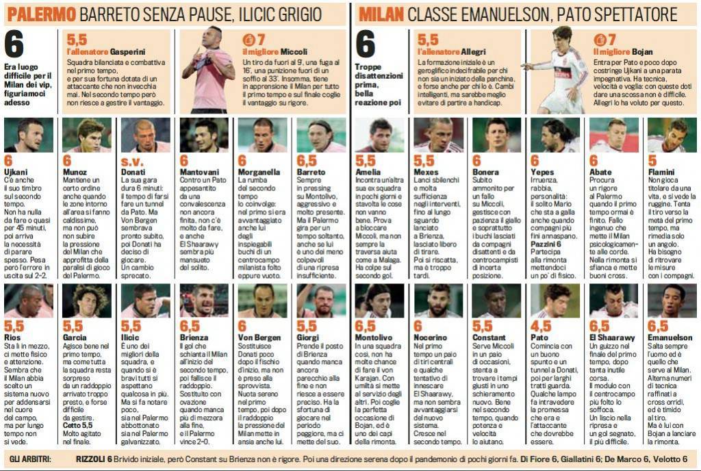 Palermo-Milan, i voti e le pagelle Gazzetta dello Sport: Bojan è una stella, che disastro Pato! – Foto