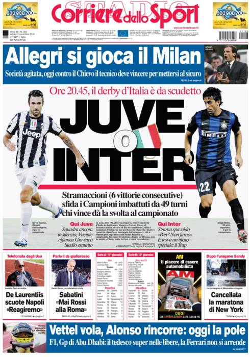 CORRIERE JUVENTUS INTER – Il Corriere dello Sport parla di Juventus o Inter come candidata per lo Scudetto.