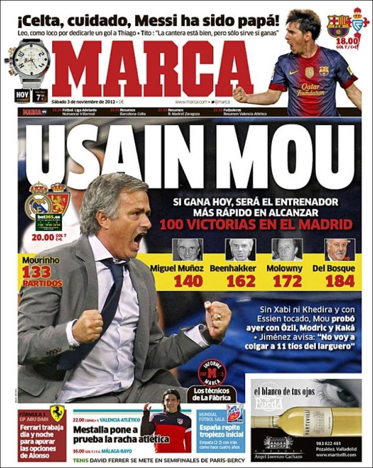 MARCA MOURINHO – Sul quotidiano Marca si parla di Mourinho che in caso di vittoria questa diventerebbe il tecnico del Real Madrid più veloce ad aver conquistato le 100 vittorie.