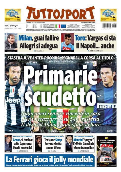 TUTTOSPORT SCUDETTO – Su Tuttosport si parla del match tra Juventus e Inter con Marchisio che recupera nella Juventus.