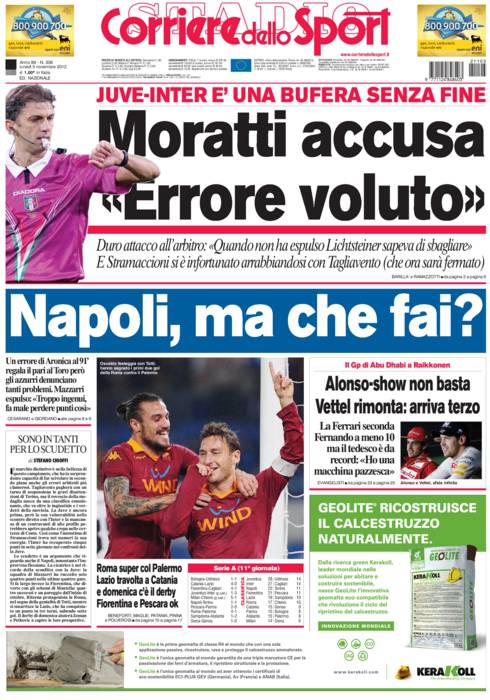 CORRIERE MORATTI – Sul Corriere dello Sport si parla di Moratti che ha accusato l’arbitro Tagliavento.