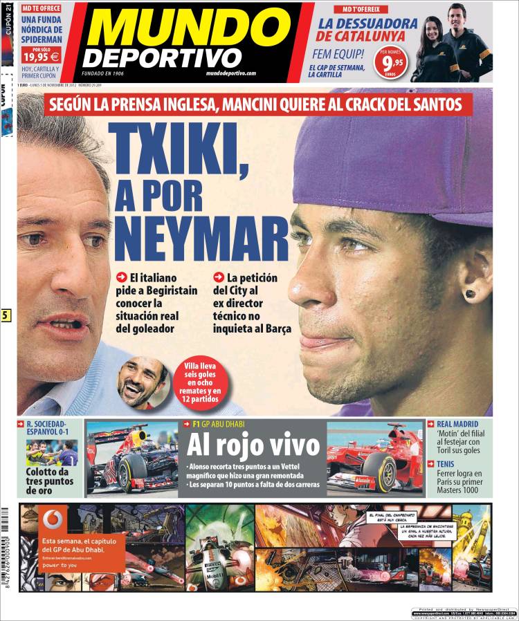 MUNDO DEPORTIVO NEYMAR – L’ex dirigente del Barcellona Begiristain, oggi dirigente del City, sta provando a soffiare Neymar ai catalani su richiesta di Mancini.