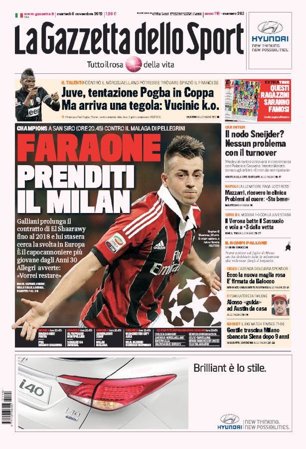 GAZZETTA FARAONE MILAN – La Gazzetta dello Sport parla del Milan che oggi giocherà contro il Malaga.