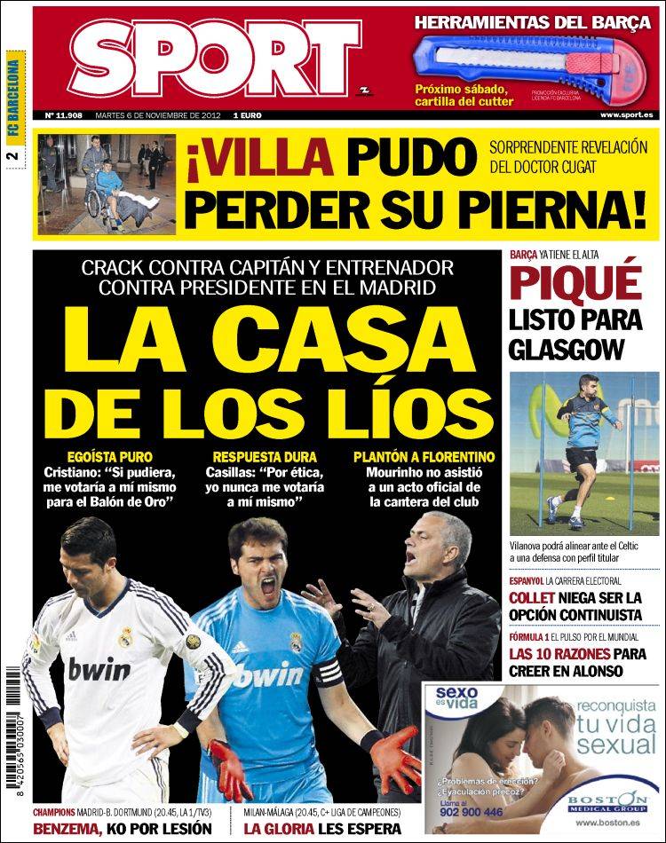 SPORT REAL MADRID – Il quotidiano madrileno attacca il Real Madrid per via dei tanti litigi presenti tra le merengues.