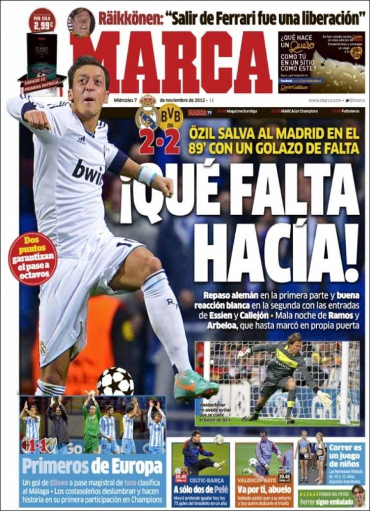 MARCA REAL MADRID – Sul quotidiano spagnolo Marca si parla del Real Madrid che pareggia in casa due a due contro il Borussia.
