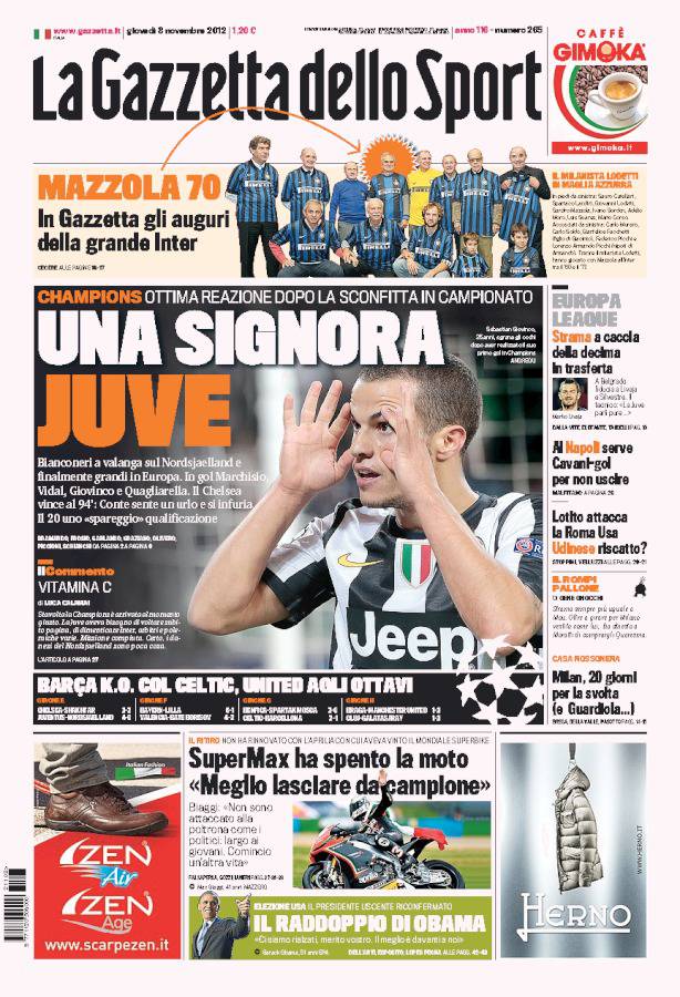 GAZZETTA JUVENTUS – Sulla Gazzetta dello Sport si parla della Juventus che vince quattro a zero contro il Nordsjaelland.