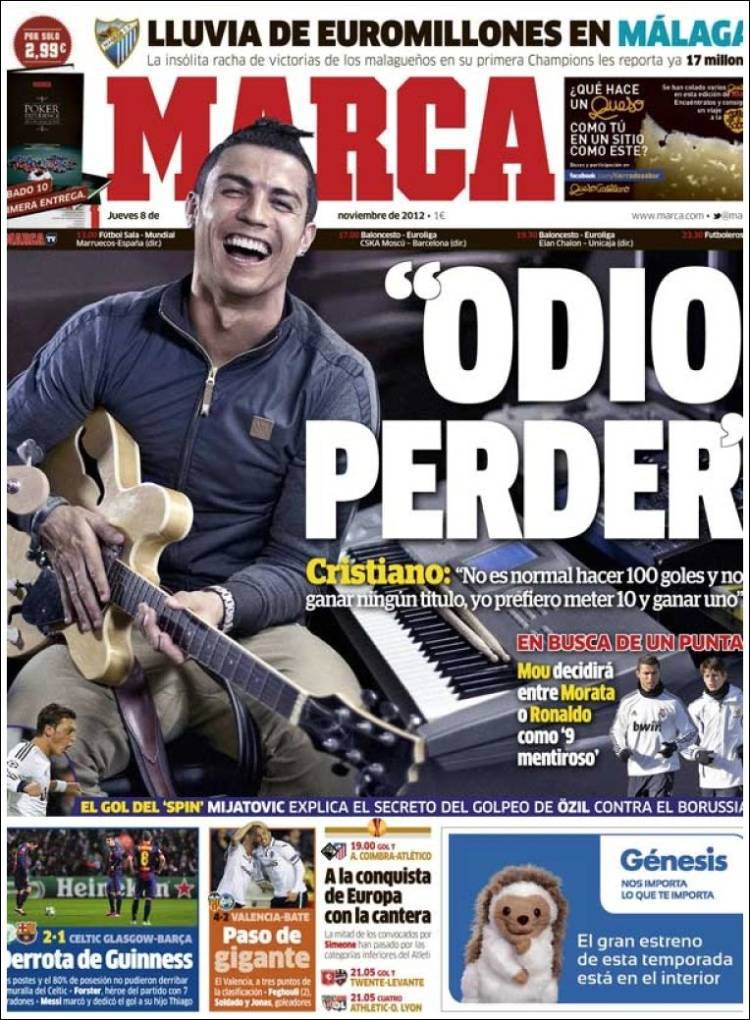 MARCA RONALDO – Cristiano Ronaldo rivela al quotidiano Marca che preferirebbe segnare di meno e vincere di più.