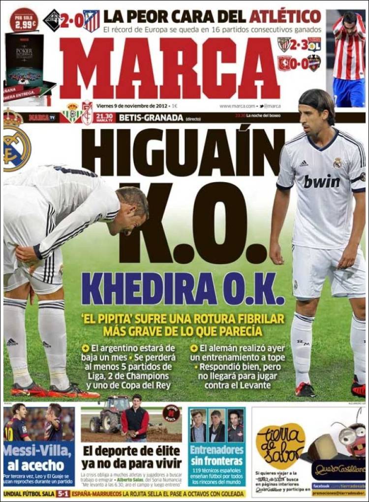 MARCA HIGUAIN KHEDIRA – Sul quotidiano Marca si parla di Higuain infortunato e Khedira che invece è ok fisicamente.