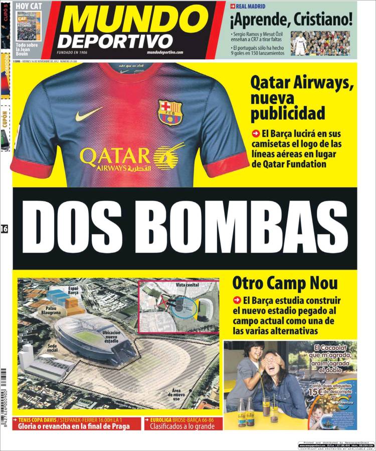 Mundo Deportivo: Due bombe 16/11/2012 di Admin3 MUNDO DEPORTIVO BARCELLONA – Sul quotidiano Mundo Deportivo si parla di due novità per il Barcellona. La redazione di Calciomercatonews.com