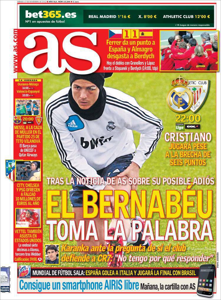 As: Il Bernabeu prende la parola 17/11/2012 di Admin3 AS BERNABEU – I tifosi del Real Madrid non vogliono che Ronaldo lasci il Real Madrid. La redazione di Calciomercatonews.com