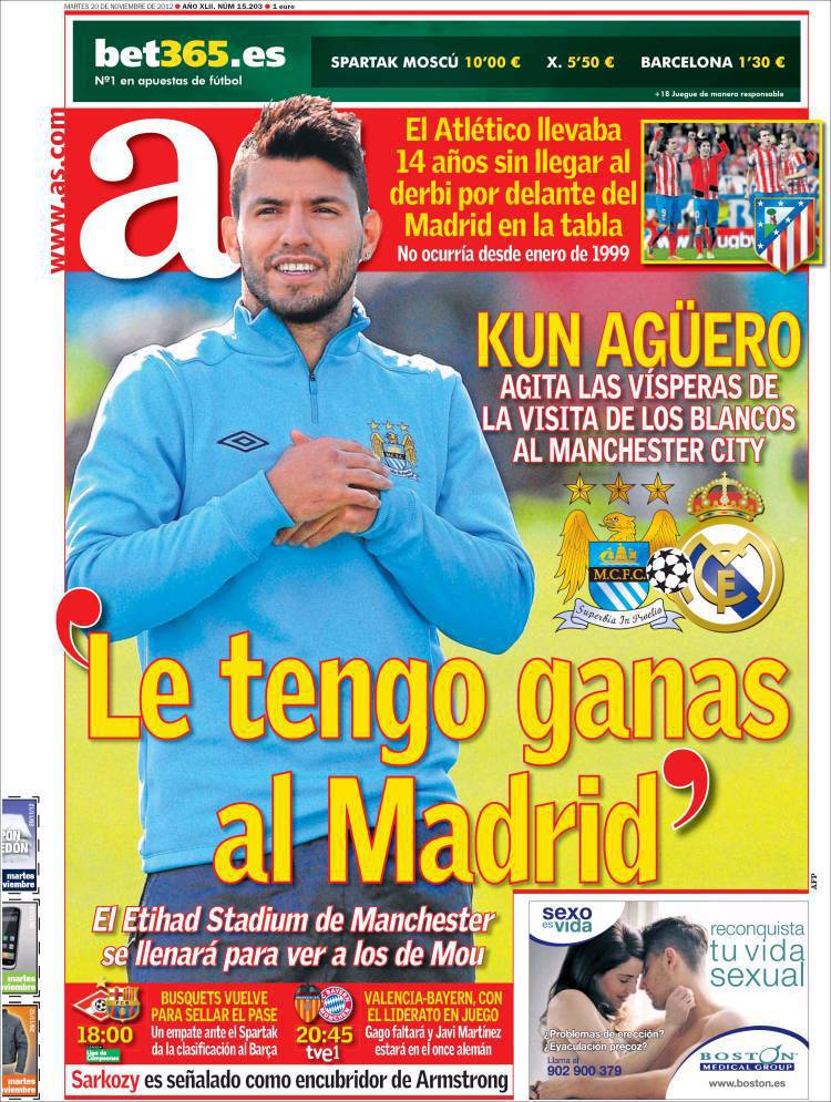 As: “Voglio vincere contro il Real Madrid”! 20/11/2012 di Admin3 AS AGUERO – Anche il Kun Aguero vuole assolutamente vincere contro il Real Madrid. La redazione di Calciomercatonews.com