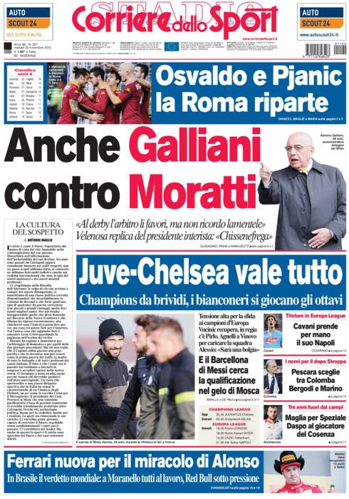 CORRIERE GALLIANI MORATTI – Sul Corriere dello Sport si parla di Galliani che ha criticato Moratti.