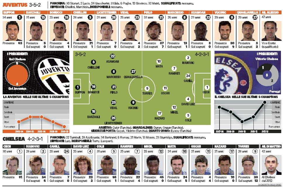 JUVENTUS CHELSEA PROBABILI FORMAZIONI – Poco più in basso potrete visionare le probabili formazioni di Juventus-Chelsea, firmate Gazzetta dello Sport. Una gara fondamentale quella che si giocherà questa sera alle ore 20.45 allo stadio Juventus Stadium di Torino, visto che i bianconeri hanno l’obbligo di vincere per sperare nella qualificazione agli ottavi di finale. Probabile l’assenza di Mirko Vucinic non al 100%, ma comunque convocato, e in attacco dovrebbe giocare la coppia Quagliarella-Giovinco. Sulla fascia destra favorito Lichtsteiner su Isla mentre resto della formazione come da copione.